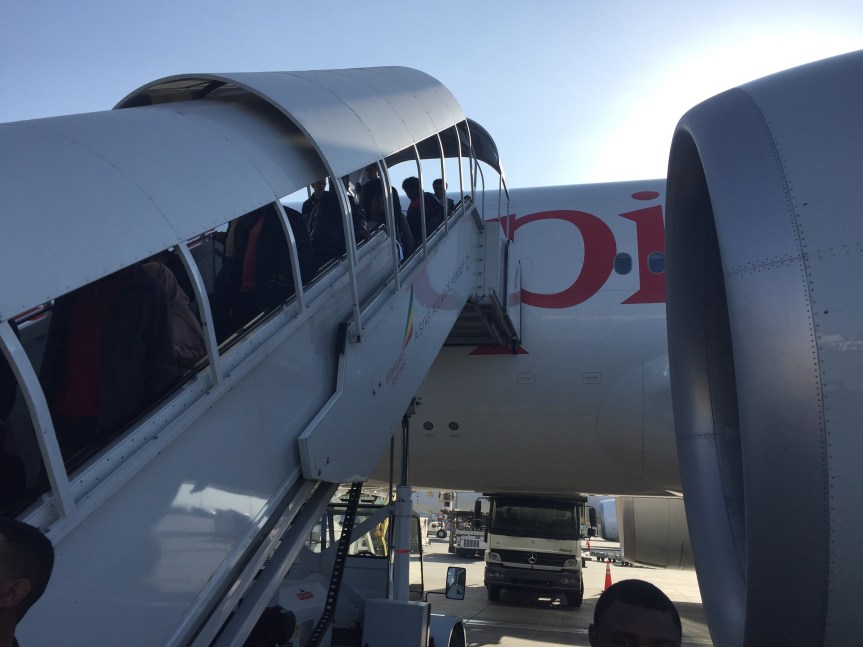 04APR2017 – We are nearly ready to embark. We leave San Diego in 3 hours!! About 12 hours from now, we’ll get on an Ethiopian plane, but larger than this one. Stay tuned, and please pray…. I could be wrong, but that looks like gray hair forming on my head. Must be the lighting. Yeah, definitely the lighting.