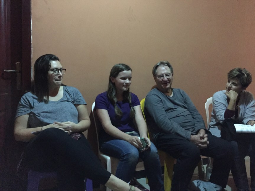 Rachel with a young lady (left, also Rachel’s age) during the day and our translator (right).