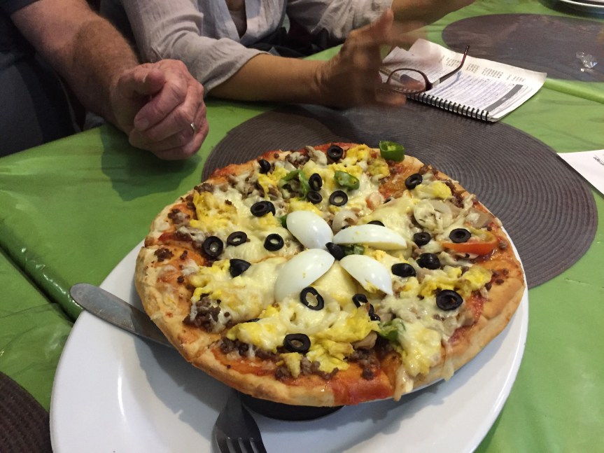 Our hotel said they made pizza especially for us. Yep, that’s egg on it. It was very good.